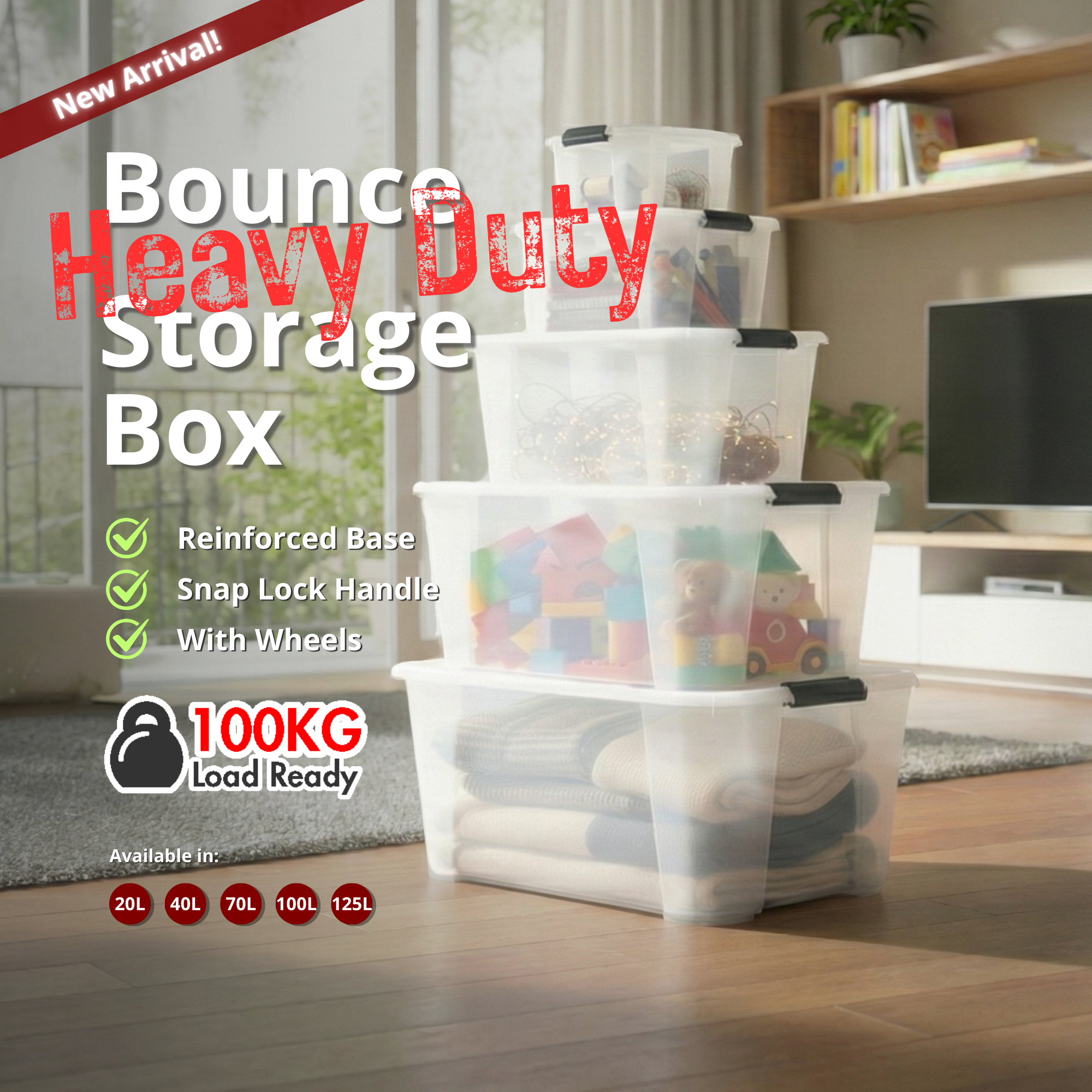 HOUZE - Bounce Storage Box With Wheels (Clear) 20L | 40L | 70L | 100L | 125L - Plastic | Container | Box | Organizer