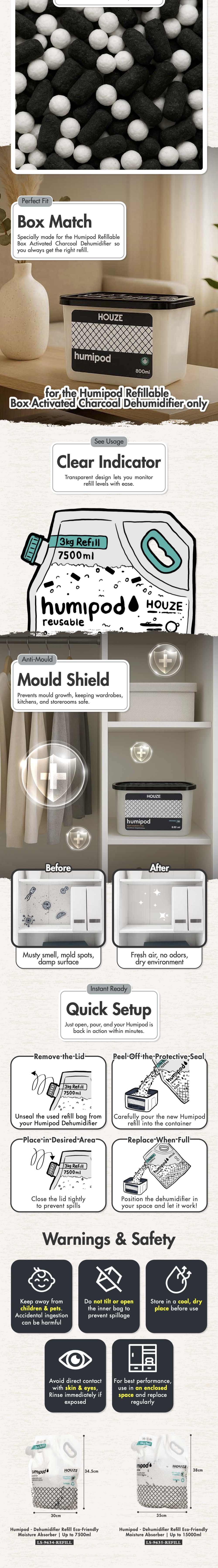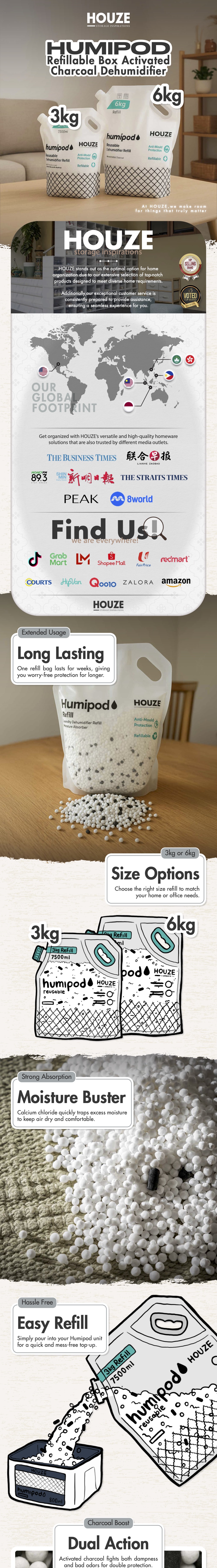 HOUZE - Humipod - Reusable 1000ml Dehumidifier Refill Tub - Pack of 4